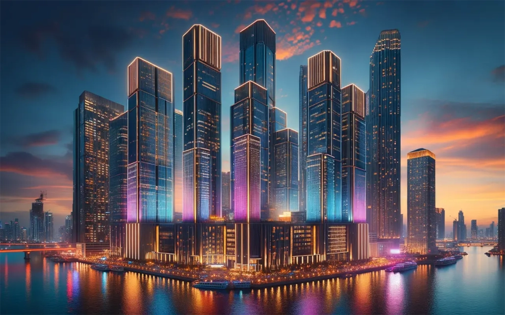 Architectural and media façade lighting brings buildings to life by blending artistic illumination with dynamic visual effects. It transforms exteriors into striking landmarks, enhancing structure, depth, and identity. With programmable lighting, color effects, and energy-efficient technology, media façades create engaging visuals for branding, storytelling, and night-time appeal. Ideal for commercial spaces, malls, hotels, and public structures, this lighting elevates both aesthetics and impact.